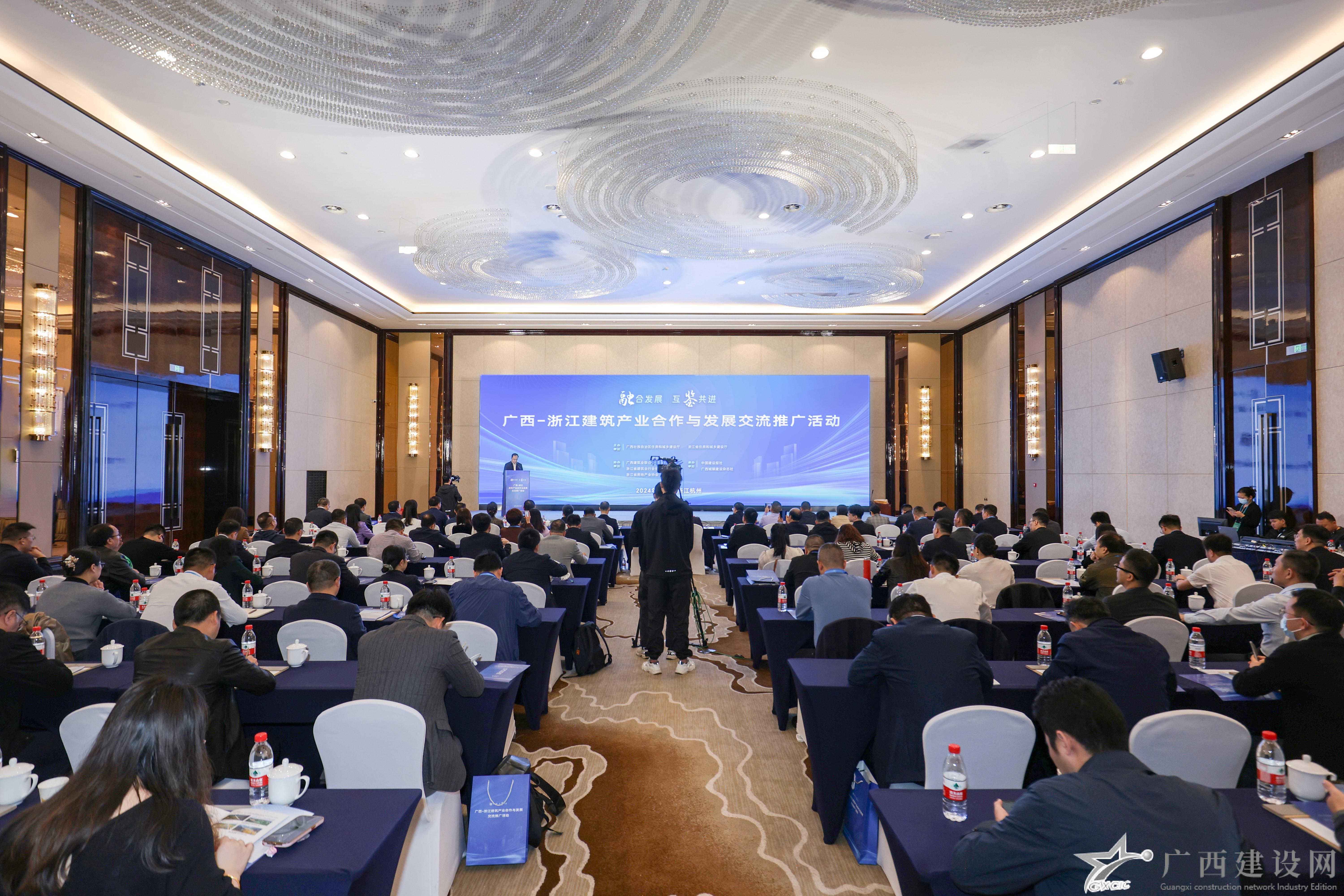 10月31日,廣西-浙江建筑產業合作與發展交流推廣活動在浙江省杭州市舉辦,來自兩省區的住房城鄉建設主管部門以及80多家建筑業、房地產等工程投融資企業代表100多人共聚一堂,話機遇、尋合作,謀劃兩地建筑產業融合發展、互鑒共進。廣西壯族自治區住房和城鄉建設廳黨組成員、副廳長黎旭標,浙江省住房和城鄉建設廳黨組成員、總工程師宋炳堅出席活動并致辭。