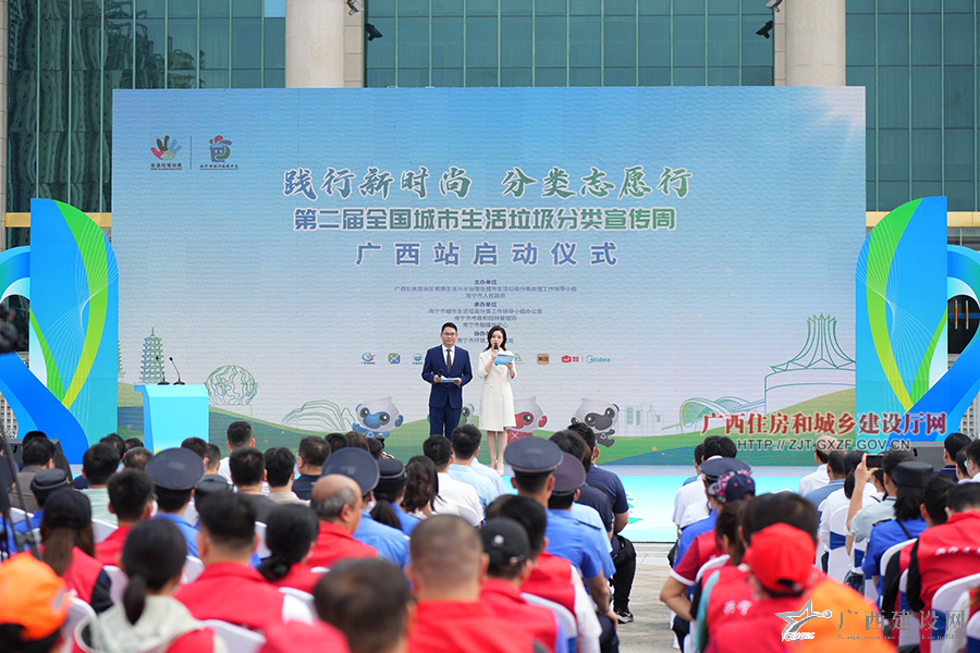 5月23日,第二屆全國城市生活垃圾分類宣傳周廣西站啟動儀式在南寧市舉行,此次活動由自治區城鎮生活污水治理及城市生活垃圾分類處理工作領導小組辦公室、南寧市人民政府主辦,以“踐行新時尚 分類志愿行”為主題,通過開展一系列豐富多彩的活動,引導群眾養成垃圾分類的文明習慣,助力廣西生態文明建設。自治區住房城鄉建設廳二級巡視員甘梅華同志出席啟動儀式并致辭。