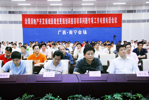 住房和城鄉(xiāng)建設(shè)部部長(zhǎng)姜偉新主持會(huì)議。住房和城鄉(xiāng)建設(shè)部副部長(zhǎng)仇保興對(duì)開(kāi)展房地產(chǎn)開(kāi)發(fā)領(lǐng)域違規(guī)變更規(guī)劃調(diào)整容積率專(zhuān)項(xiàng)治理工作作了全面部署,并對(duì)工作的重點(diǎn)、時(shí)間和方法提出了要求。監(jiān)察部副部長(zhǎng)郝明金要求要充分認(rèn)識(shí)做好專(zhuān)項(xiàng)治理工作的重要性和緊迫性,并強(qiáng)調(diào)全國(guó)監(jiān)察部門(mén)要充分發(fā)揮職能作用,配合住房城鄉(xiāng)建設(shè)部門(mén),共同遏制房地產(chǎn)開(kāi)發(fā)領(lǐng)域腐敗問(wèn)題易發(fā)多發(fā)勢(shì)頭。