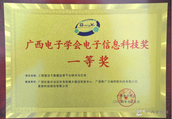 廣西住房和城鄉建設信息中心“工程建設大數據監管平臺研究與應用”項目榮獲2024年度廣西電子學會科技進步獎一等獎