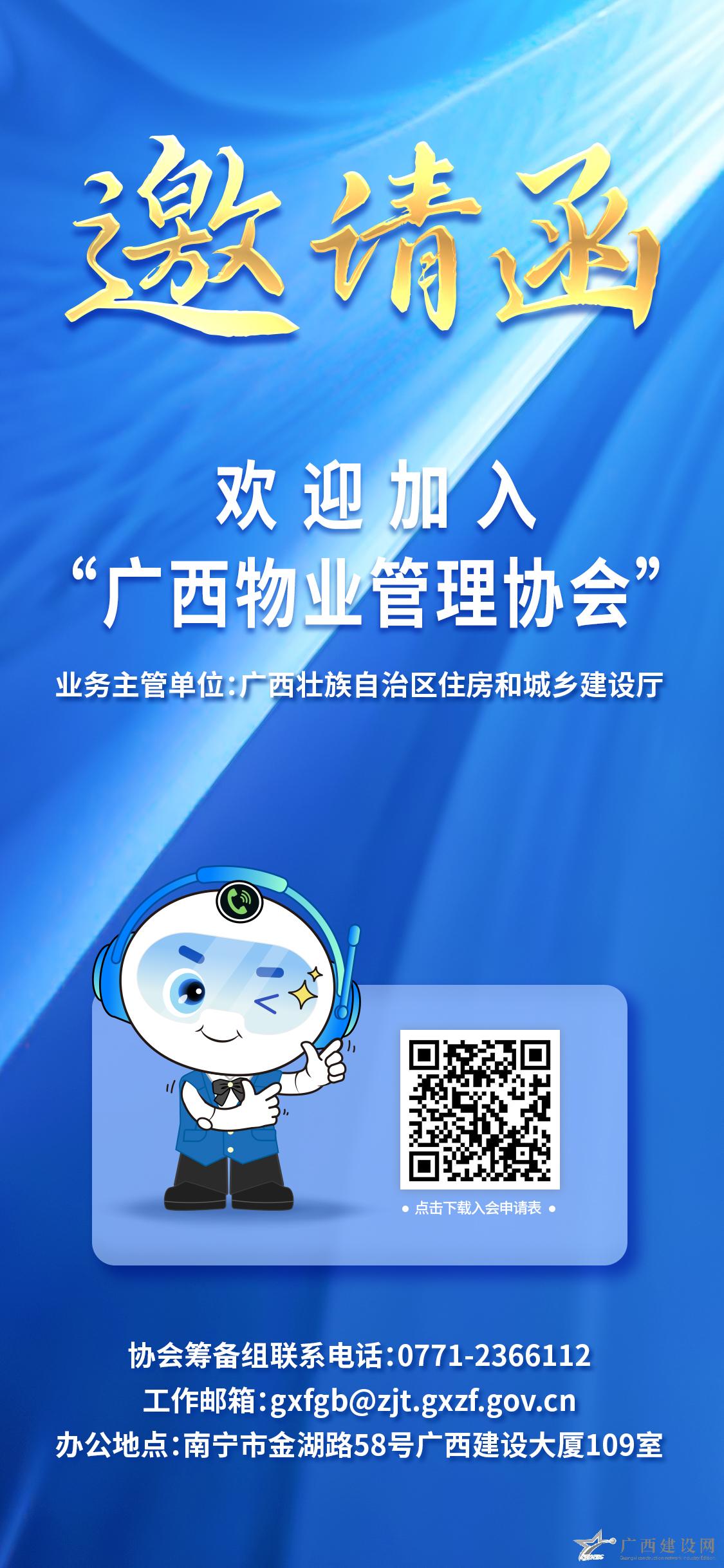 為推動物業行業高質量發展,提升廣西物業管理基層社會治理能力及綜合服務水平,現面向全區誠摯邀請有遠見、有擔當的物業服務企業及相關行業企業加入廣西物業管理協會,請有意向的企業掃碼下載并填寫《廣西物業管理協會單位會員入會申請表》發送至以下工作郵箱。