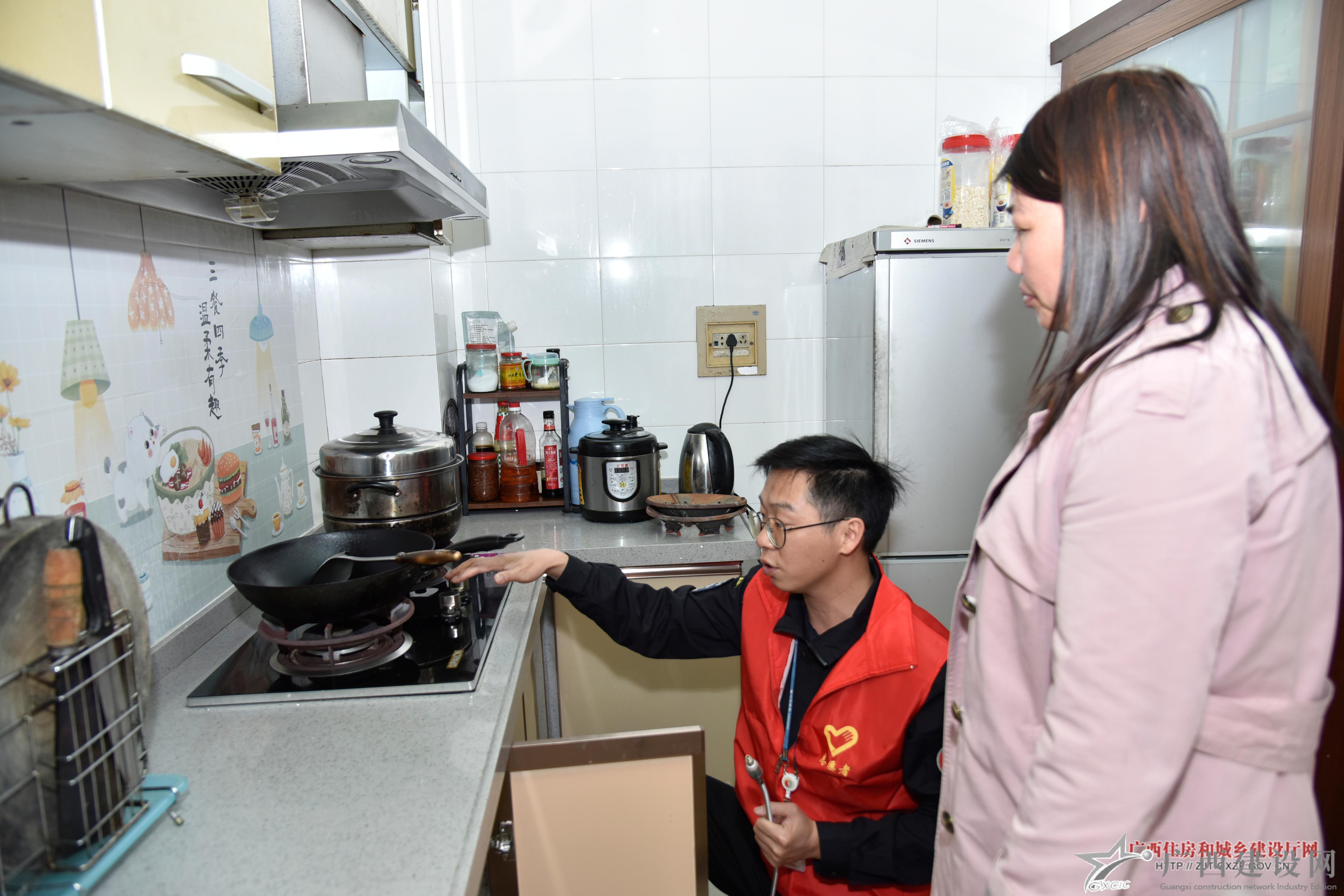 當日,自治區住房城鄉建設廳有關處室、廣西城市建設協會、南寧中燃城市燃氣發展有限公司等相關負責同志入戶開展燃氣安全排查,對居民的燃氣管道、灶具進行檢查,現場講解燃氣安全使用注意事項。