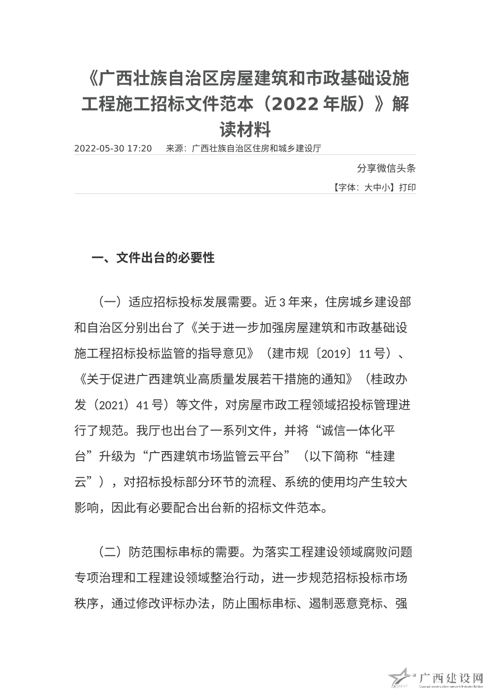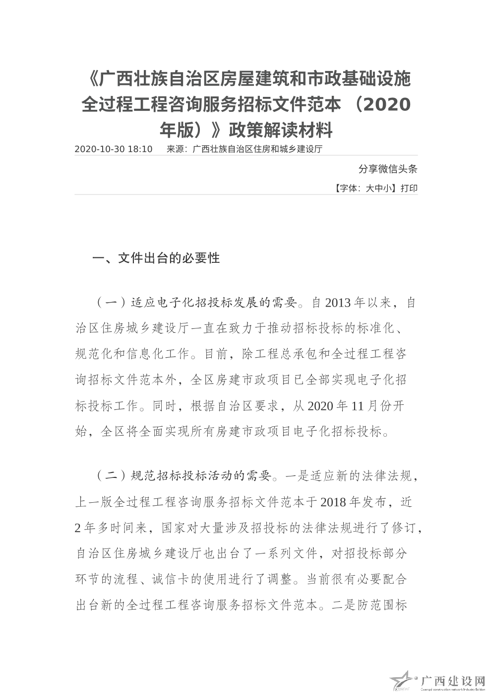 《廣西壯族自治區房屋建筑和市政工程監理招標文件范本(2020年版)》解讀材料