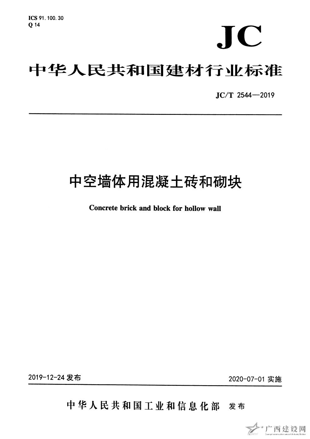 JC T2550-2019 泡沫混凝土自保溫砌塊