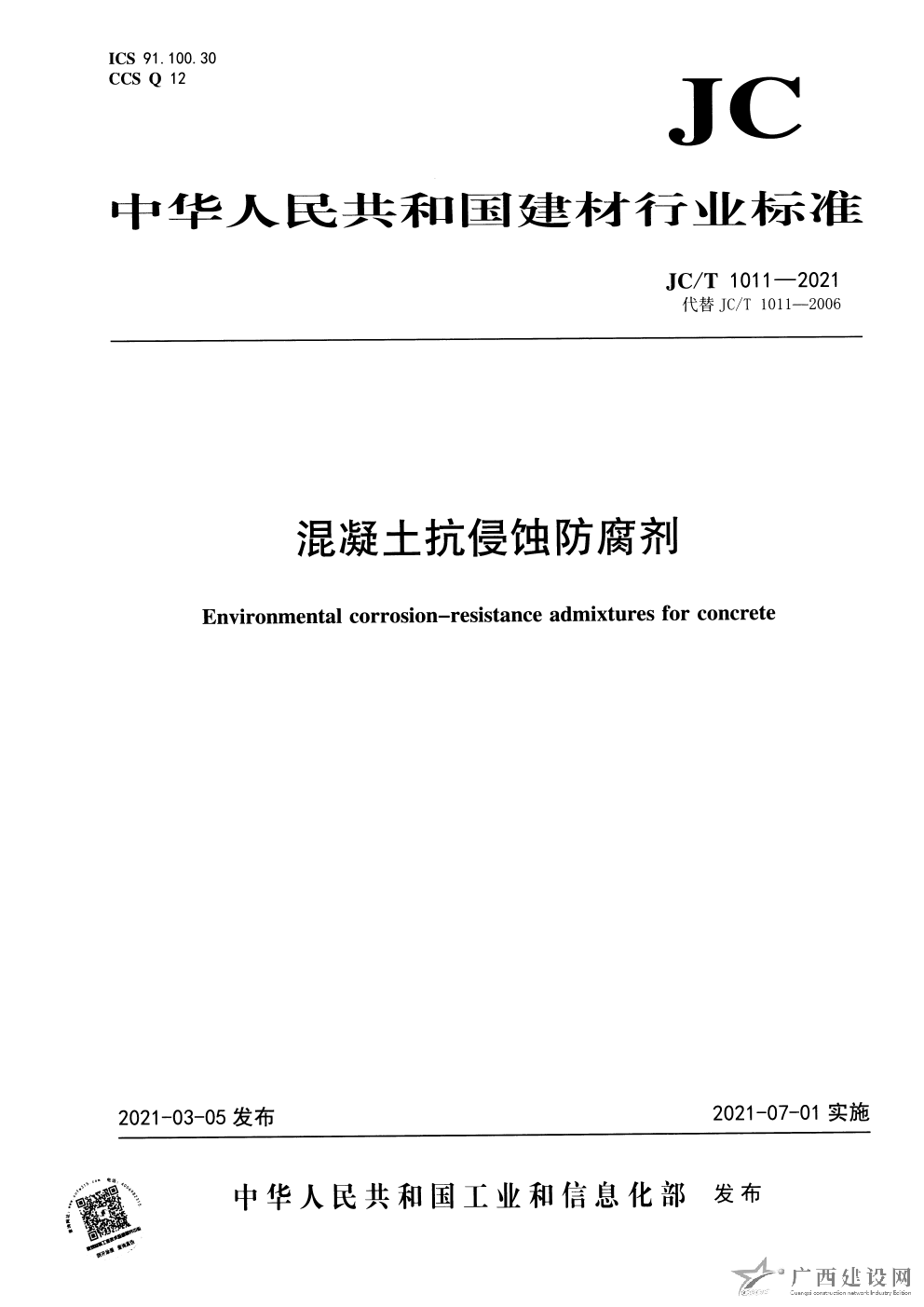JC T 1011-2021 混凝土抗侵蝕防腐劑