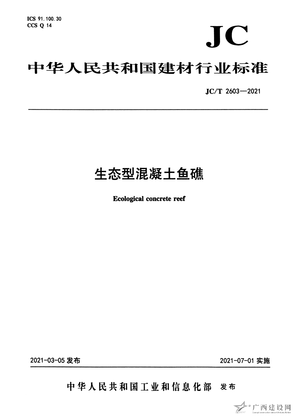 JC T 2603-2021 生態(tài)型混凝土魚礁