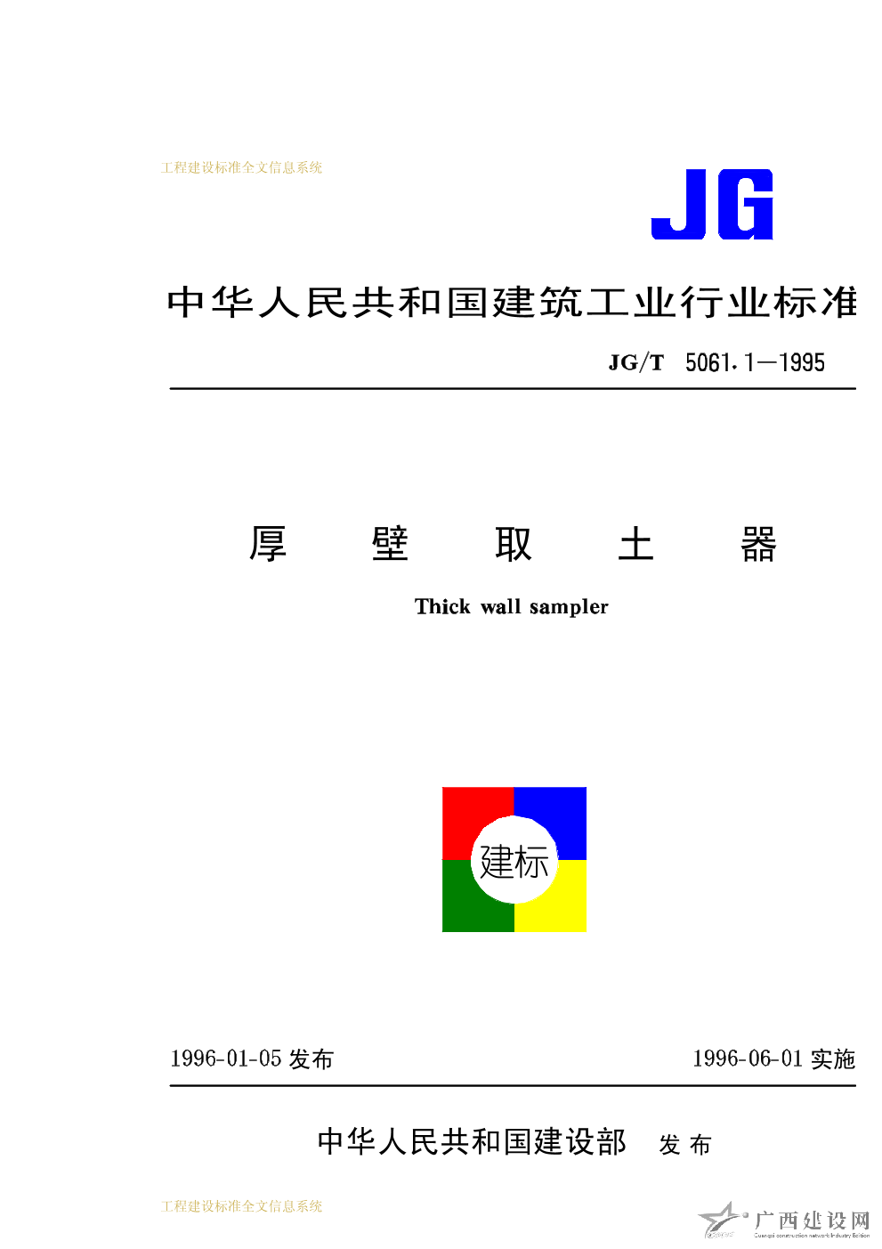 厚壁取土器 JG/T5061.1-1995