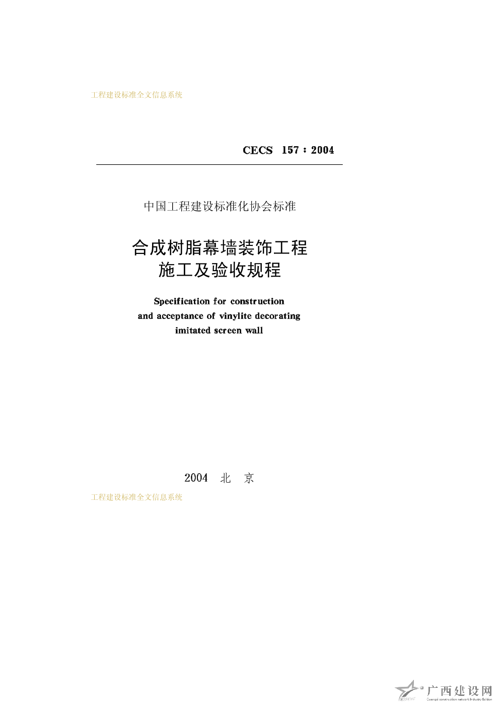 合成樹脂幕墻裝飾工程施工及驗收規程 CECS157∶2004