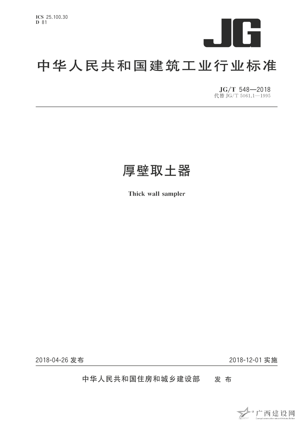 JG-T548-2018:厚壁取土器