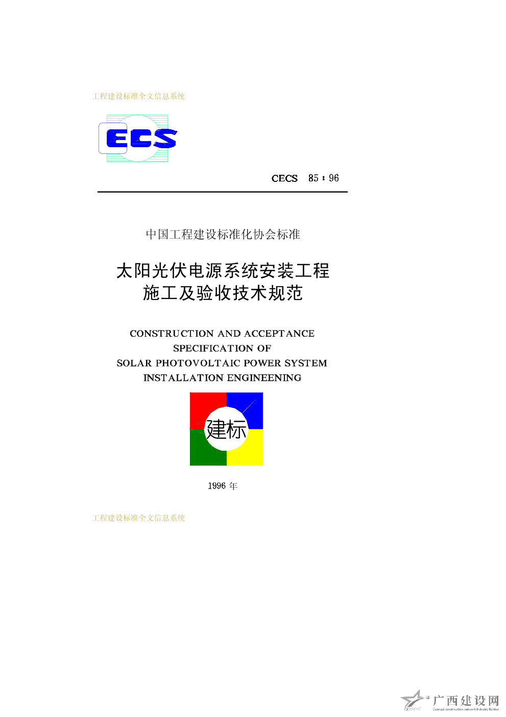 太陽光伏電源系統安裝工程施工及驗收技術規范 CECS85∶96