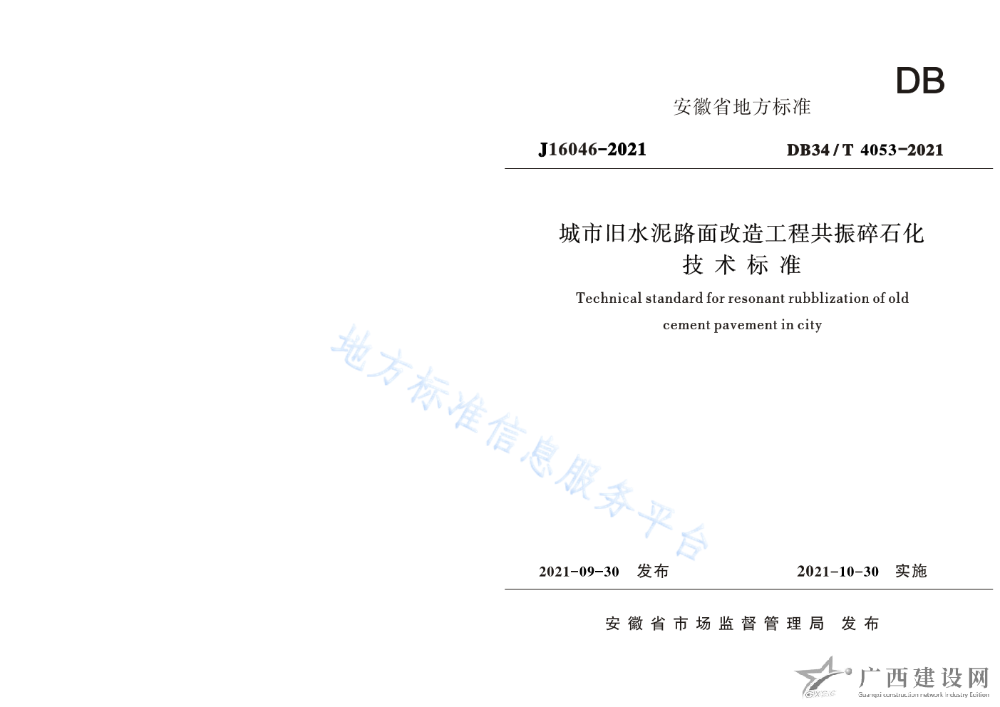 DB34 T4053-2021城市舊水泥路面改造工程共振碎石化技術(shù)標(biāo)準(zhǔn)