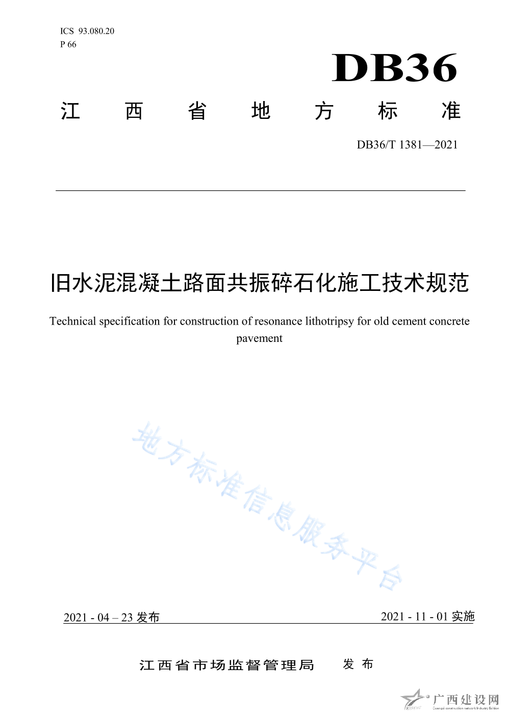 DB36 T1381-2021舊水泥混凝土路面共振碎石化施工技術(shù)規(guī)范