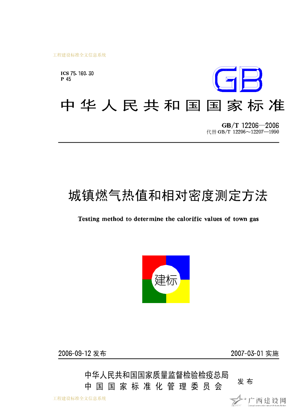 城鎮(zhèn)燃氣熱值和相對密度測定方法 GB/T12206-2006