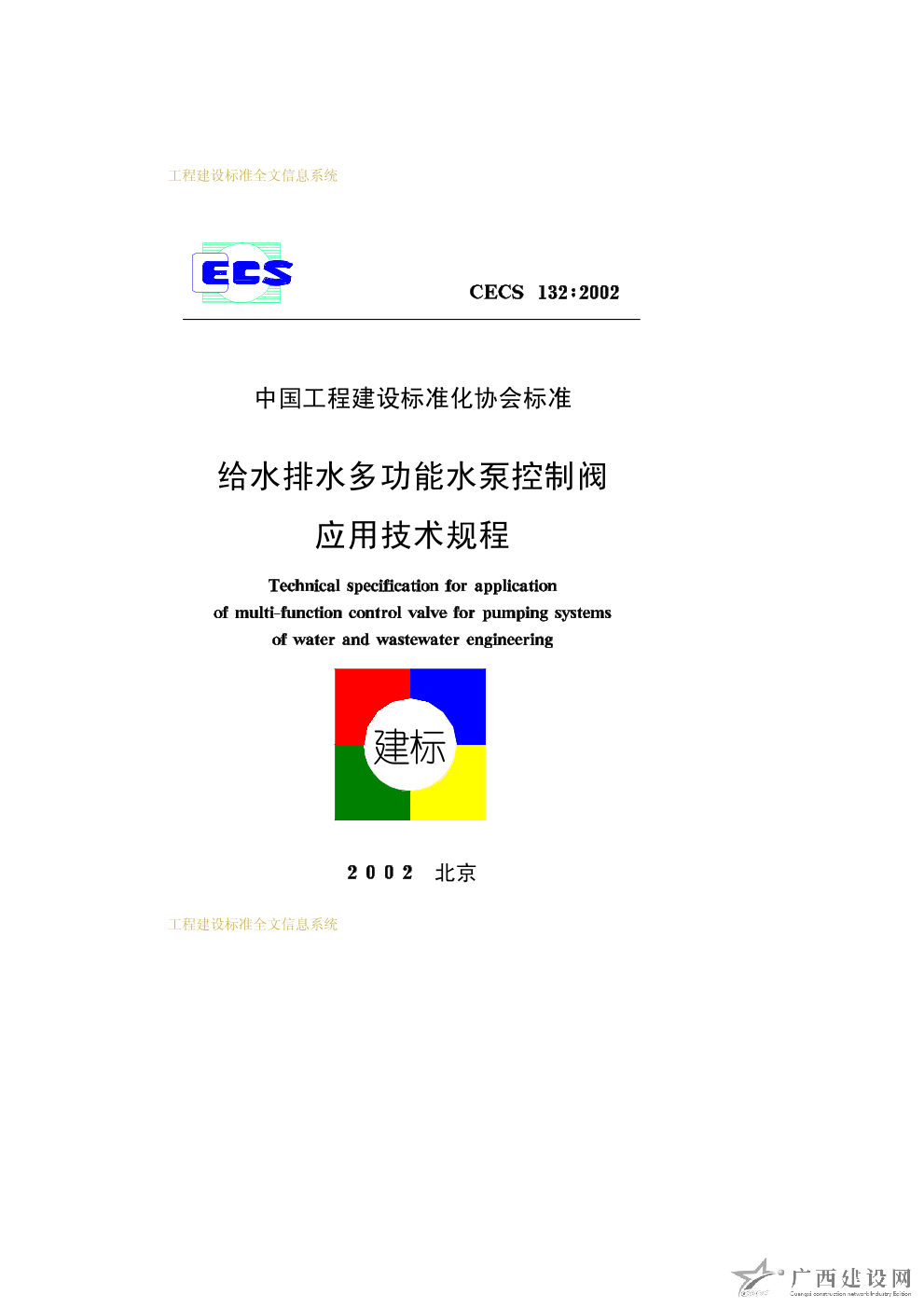 給水排水多功能水泵控制閥應用技術規程 CECS132