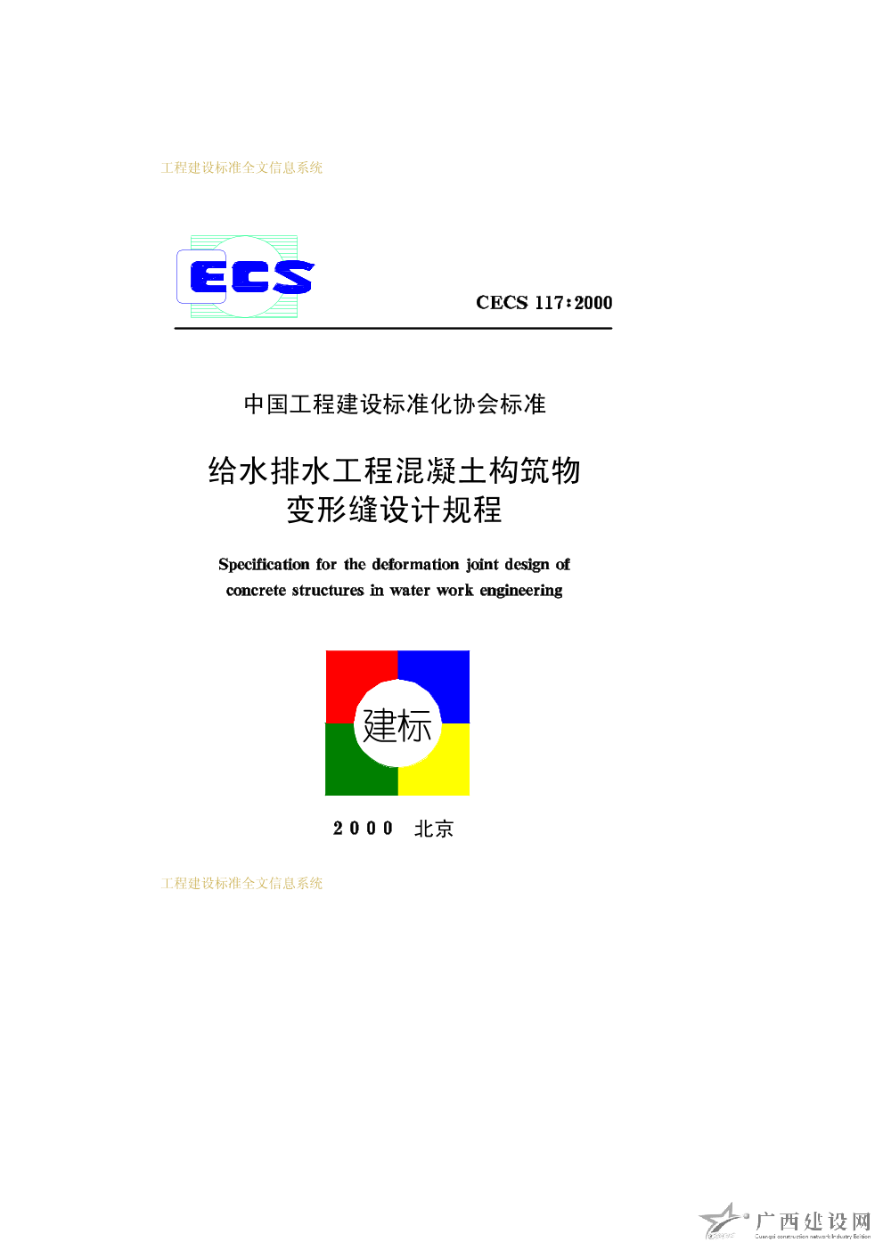給水排水工程混凝土構筑物變形縫設計規程 CECS117∶2000