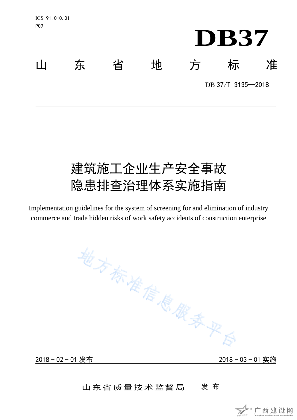 DB37 T3135-2018建筑施工企業(yè)生產(chǎn)安全事故隱患排查治理體系實施指南