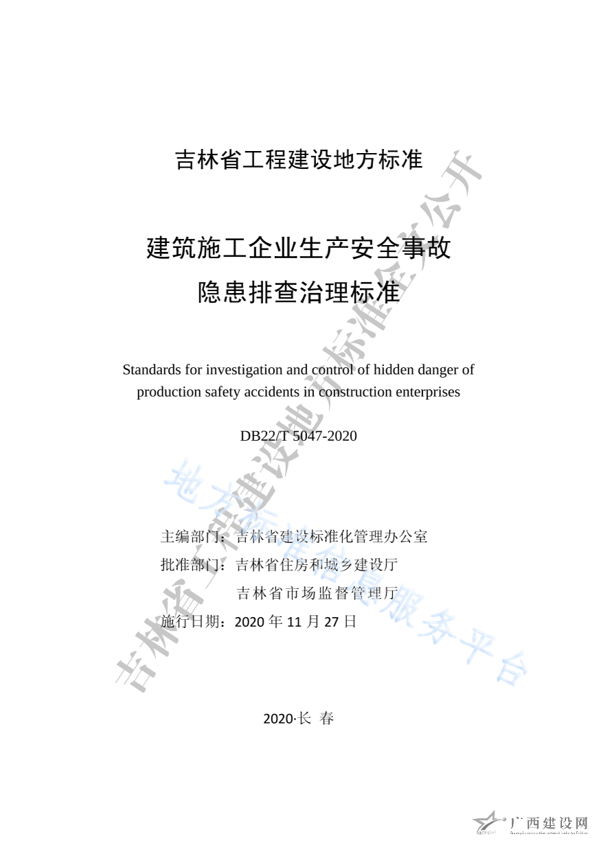 DB22 5047-2020建筑施工企業(yè)生產(chǎn)安全事故隱患排查治理標準