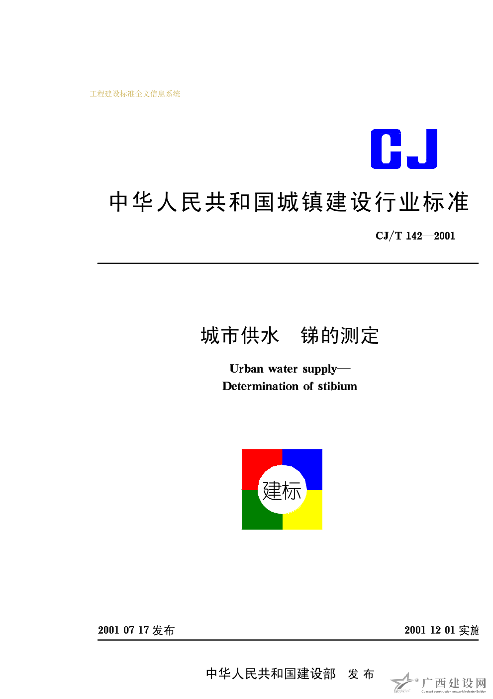 城市供水 二氧化硅的測定硅鉬藍分光光度法 CJ/T141—2001