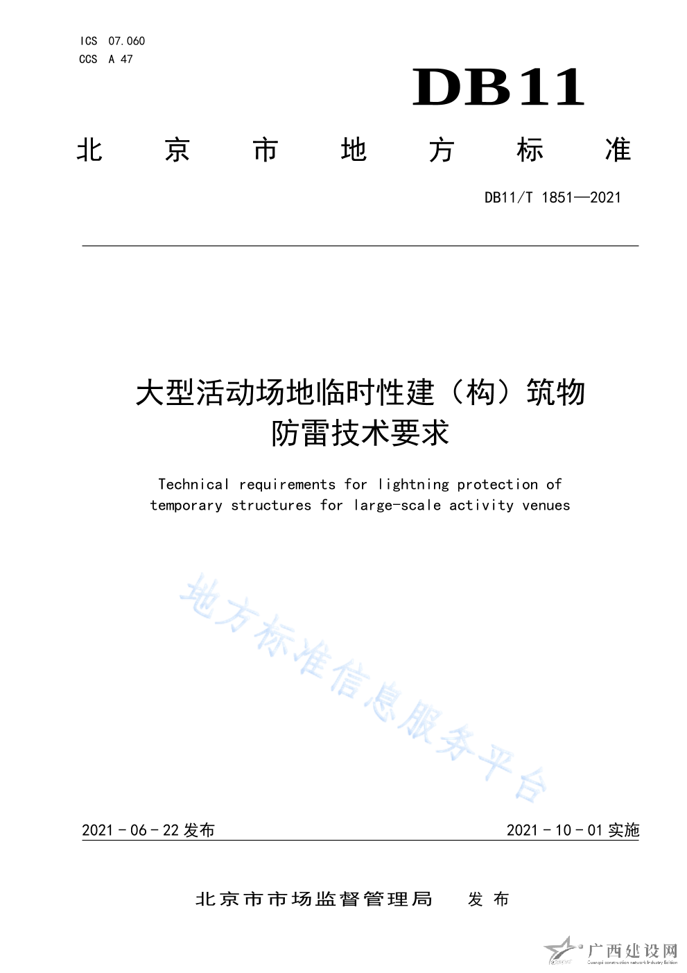 DB11 T+1851-2021大型活動場地臨時性建(構(gòu))筑物防雷技術(shù)要求