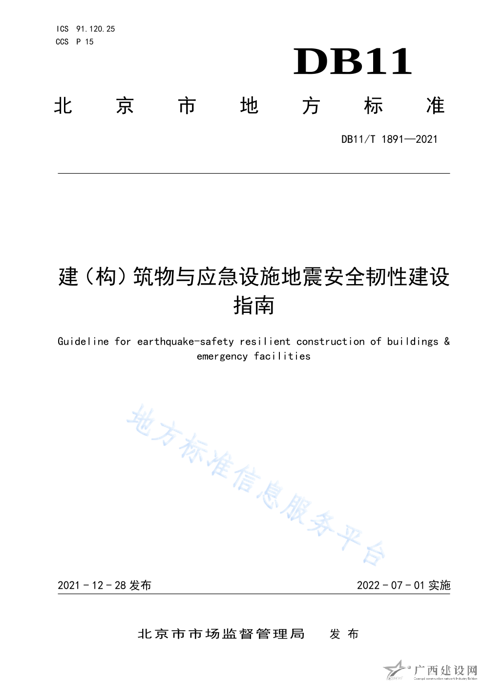 DB11 T+1891-2021建(構(gòu))筑物與應(yīng)急設(shè)施地震安全韌性建設(shè)指南