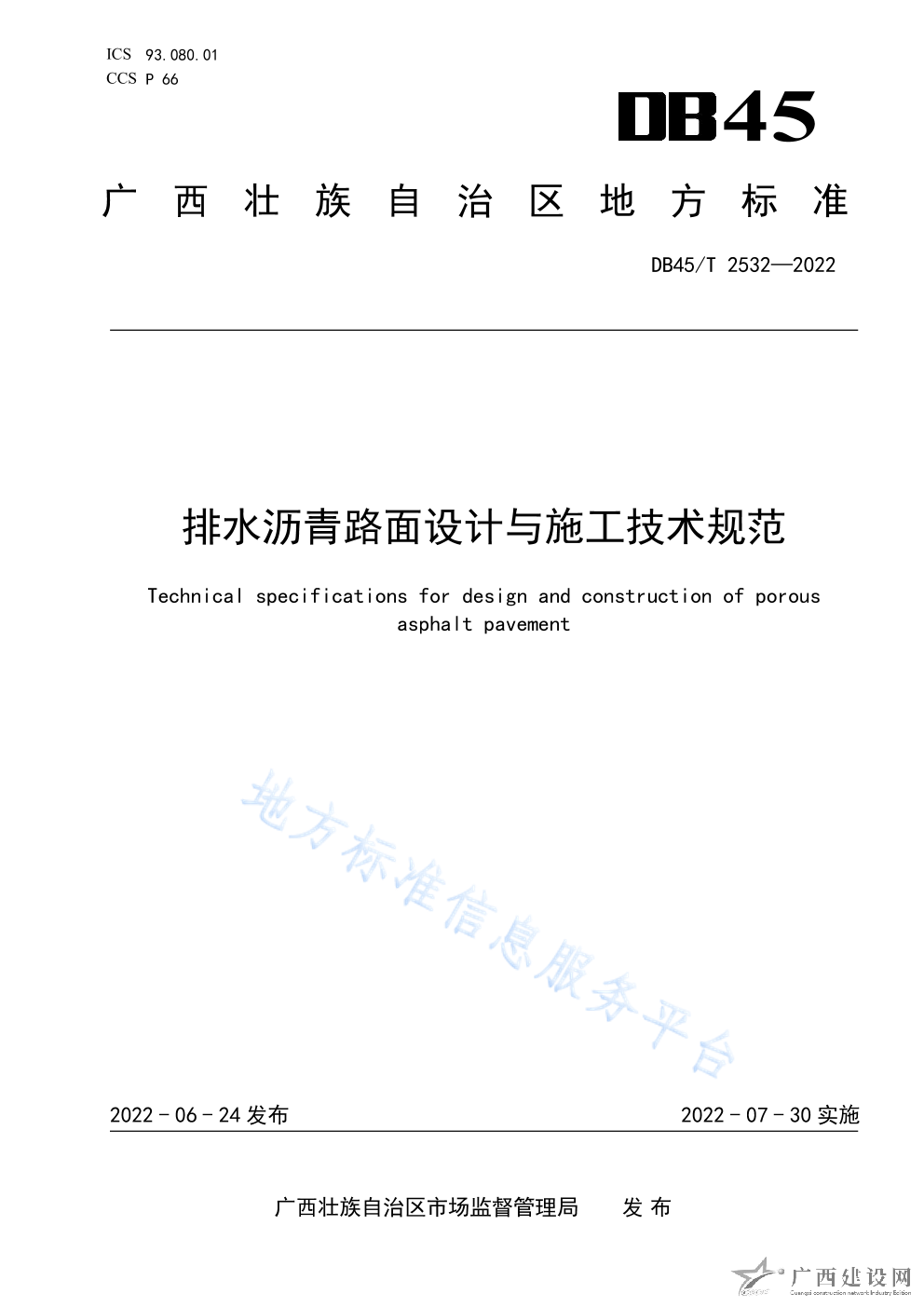 DB45T+2532-2022+排水瀝青路面設(shè)計(jì)與施工技術(shù)規(guī)范