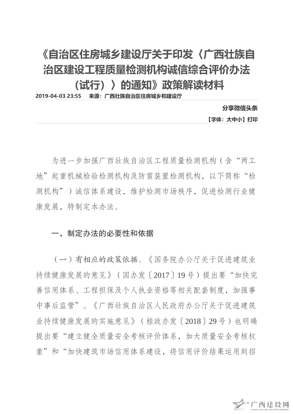 《廣西壯族自治區建設工程質量檢測信息管理辦法》政策解讀
