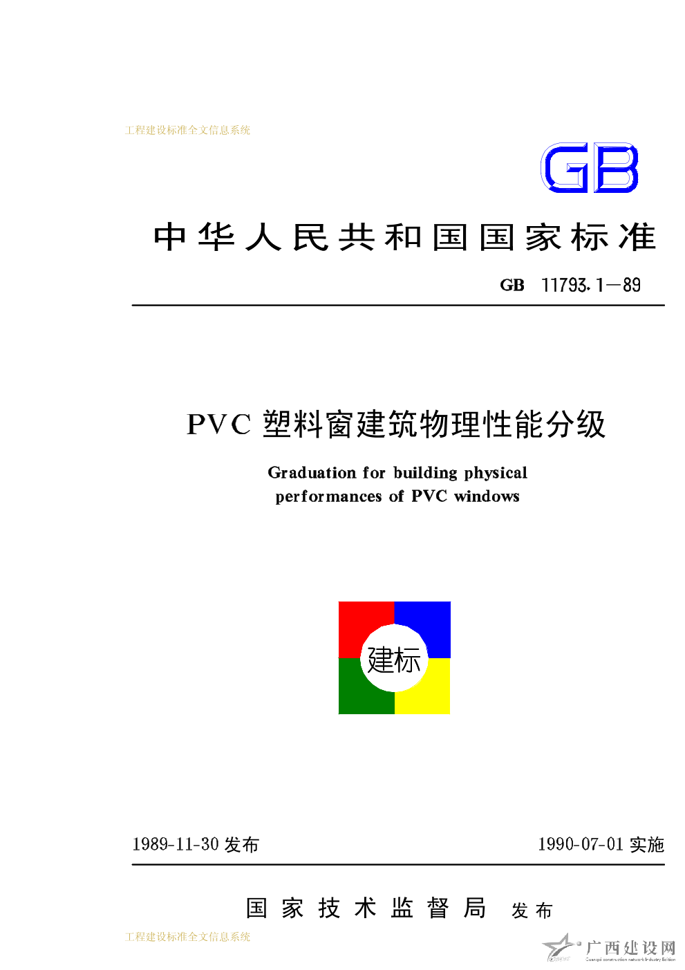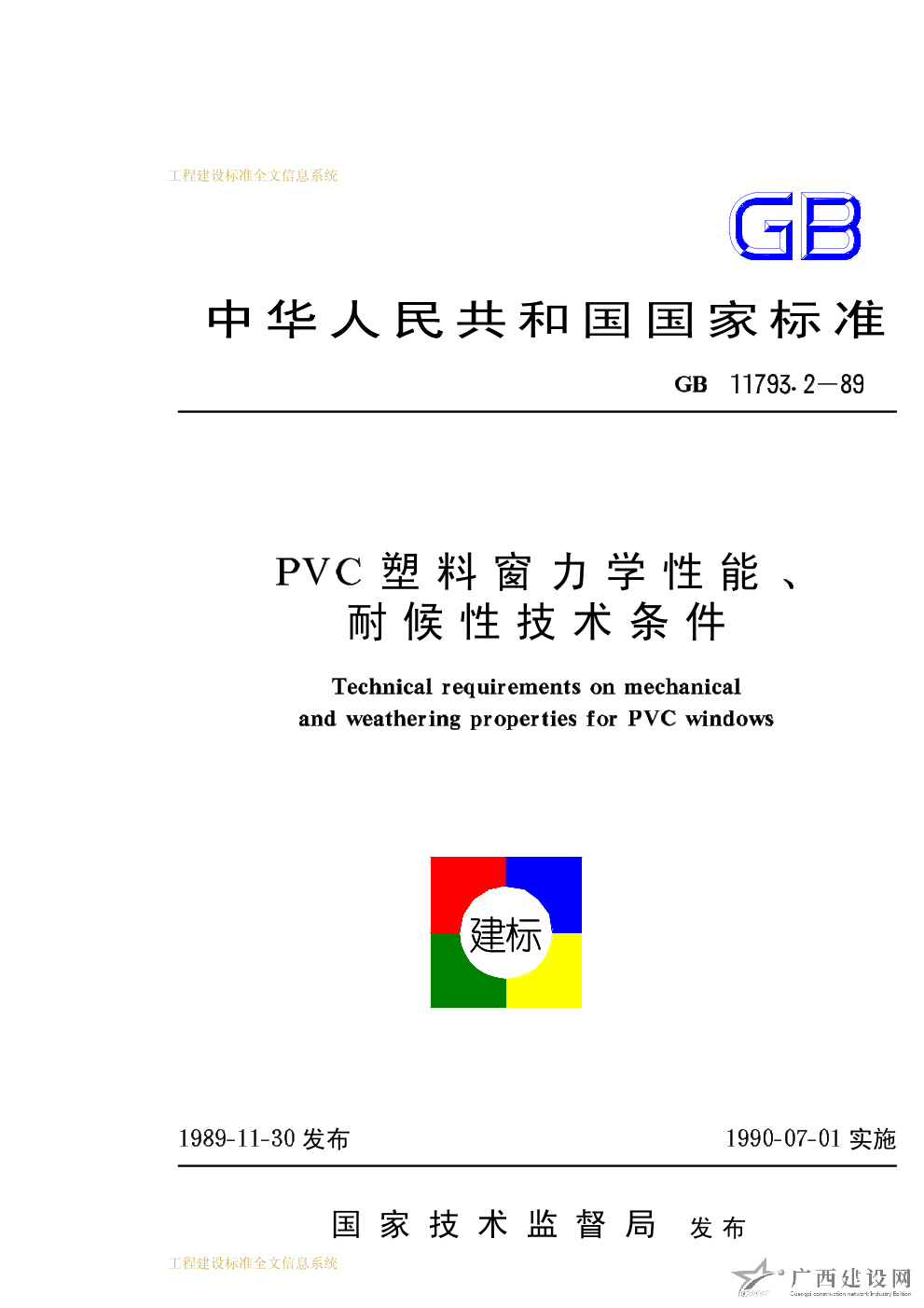 PVC塑料窗力學性能、耐候性技術條件 GB11793.2-89