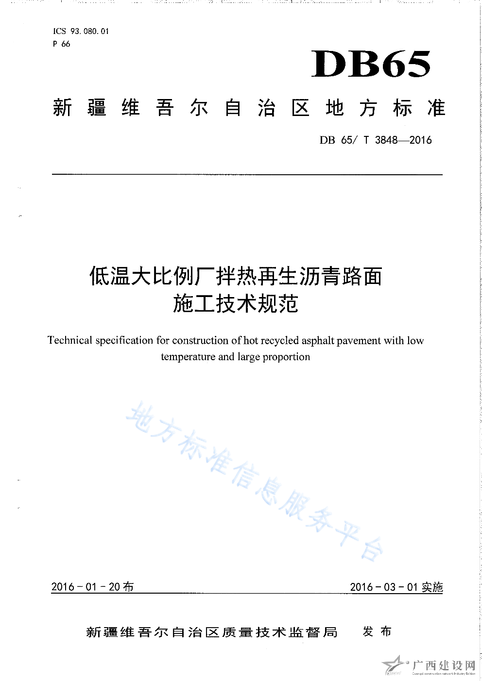 DB65 T3891-2016SMC常溫改性瀝青路面瀝青混合料設計、施工技術規范