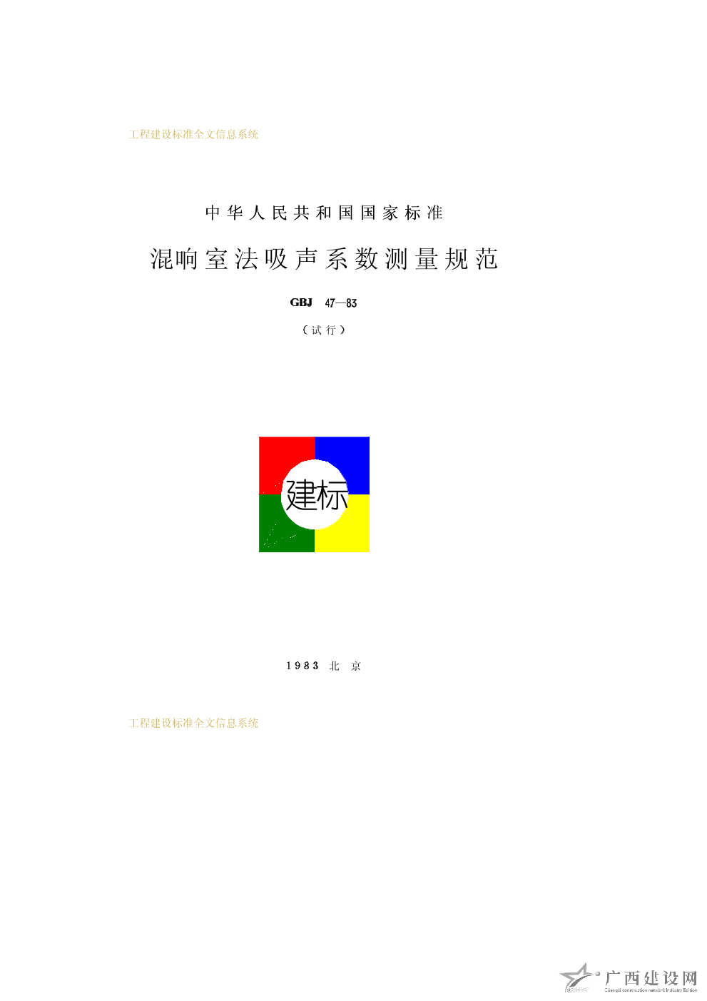 混響室法吸聲系數(shù)測(cè)量規(guī)范 GBJ47—83