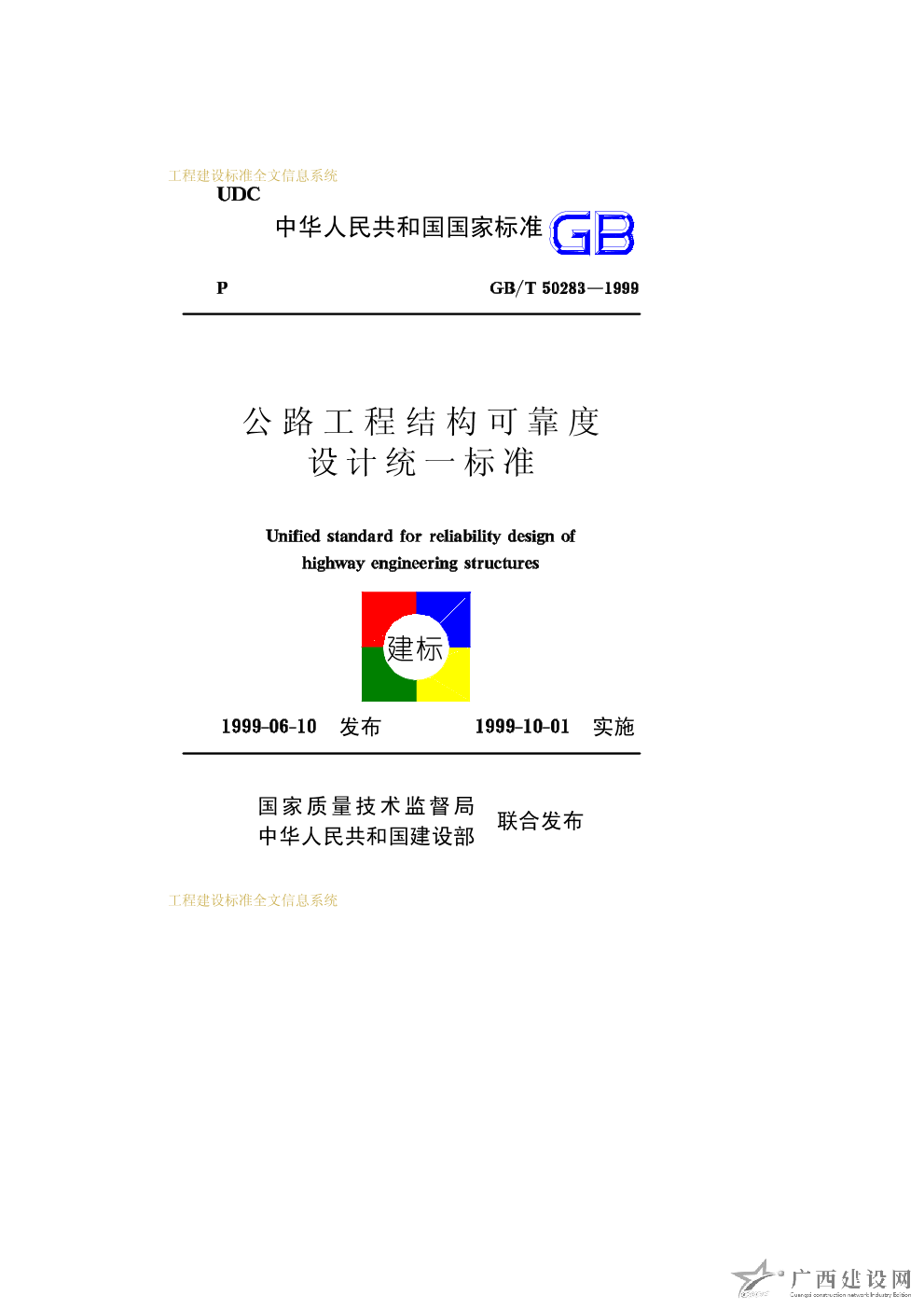 公路工程結(jié)構(gòu)可靠度設(shè)計(jì)統(tǒng)一標(biāo)準(zhǔn) GB/T50283-1999