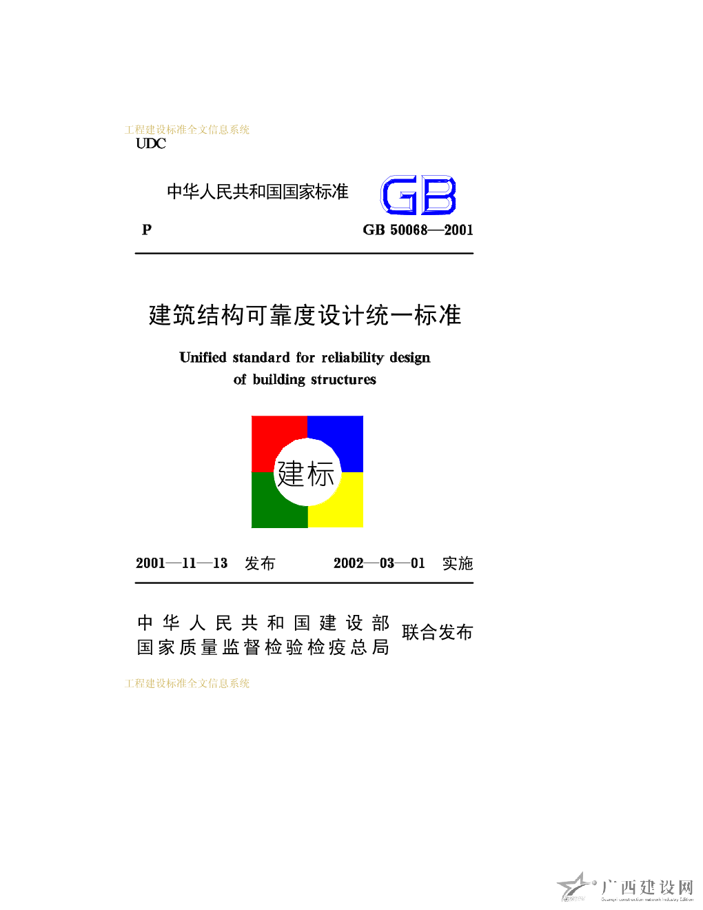 建筑結(jié)構(gòu)可靠度設(shè)計(jì)統(tǒng)一標(biāo)準(zhǔn) GB50068—2001