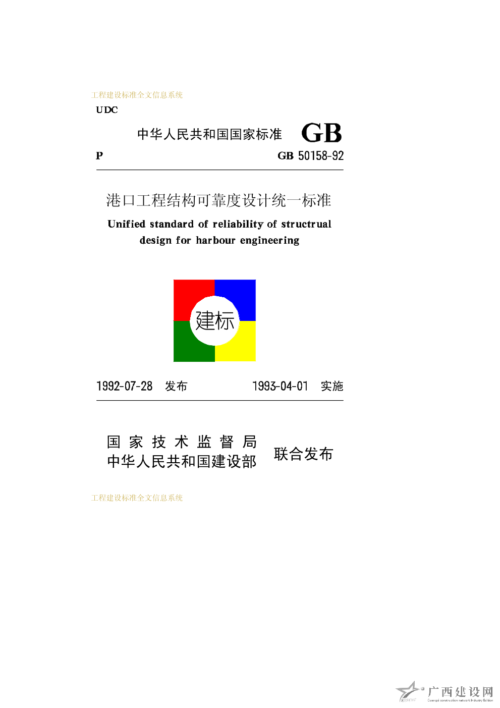 港口工程結(jié)構(gòu)可靠度設(shè)計(jì)統(tǒng)一標(biāo)準(zhǔn) GB50158-92