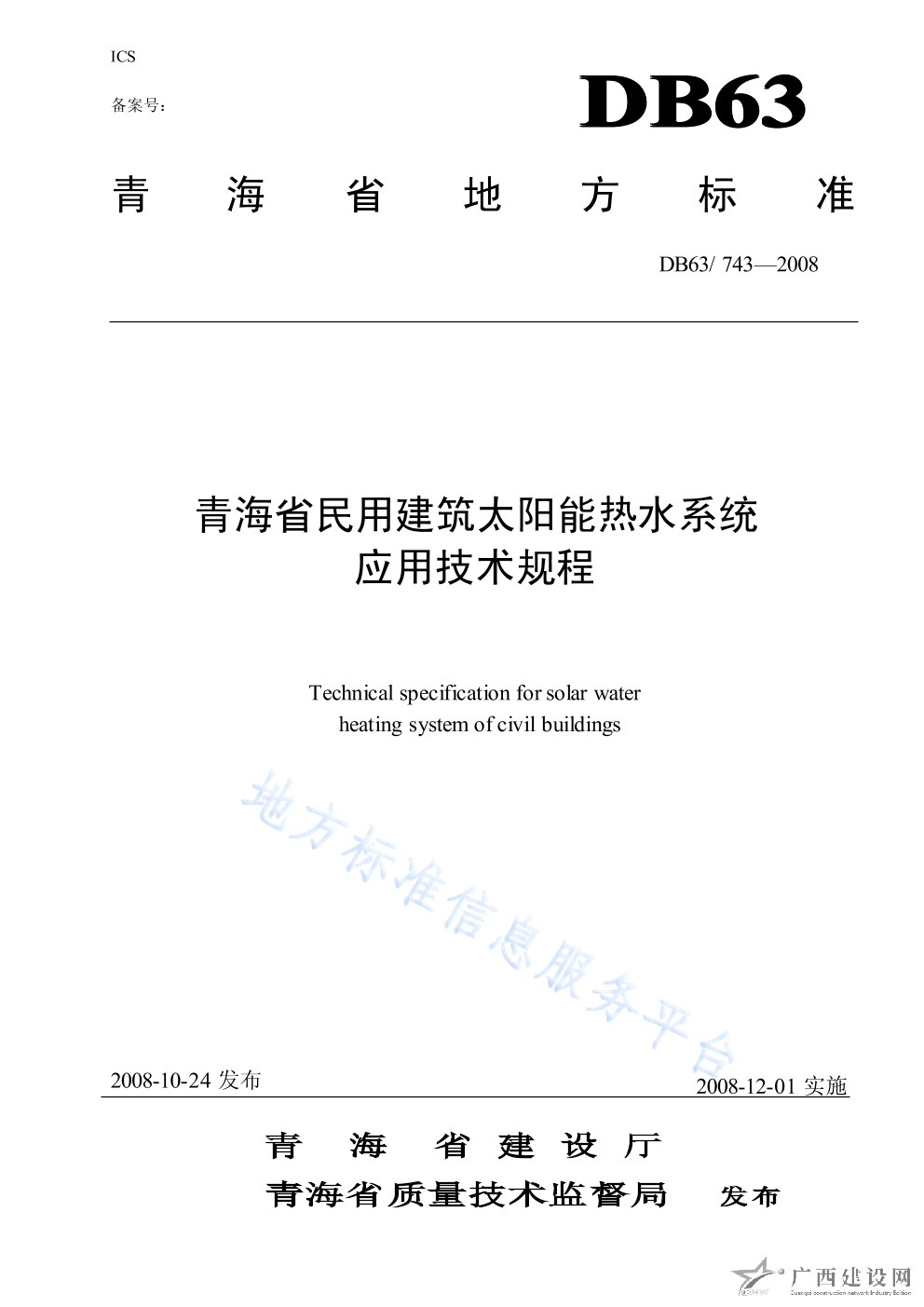 DB63 743-2008青海省民用建筑太陽能熱水系統