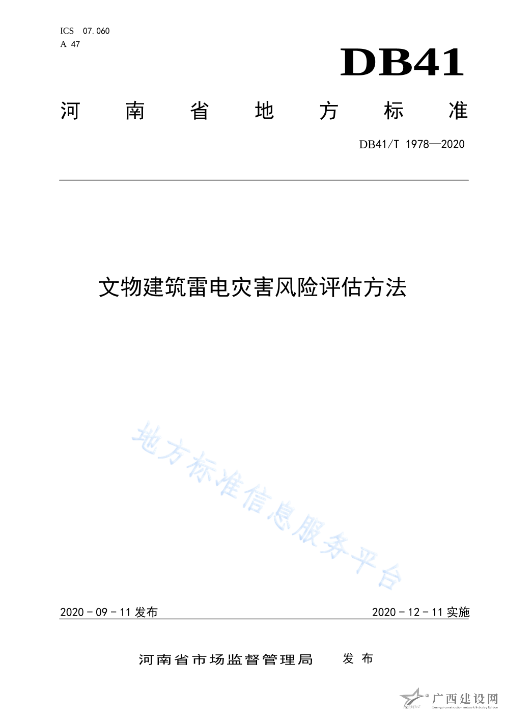 DB41 T1978-2020文物建筑雷電災害風險評估方法
