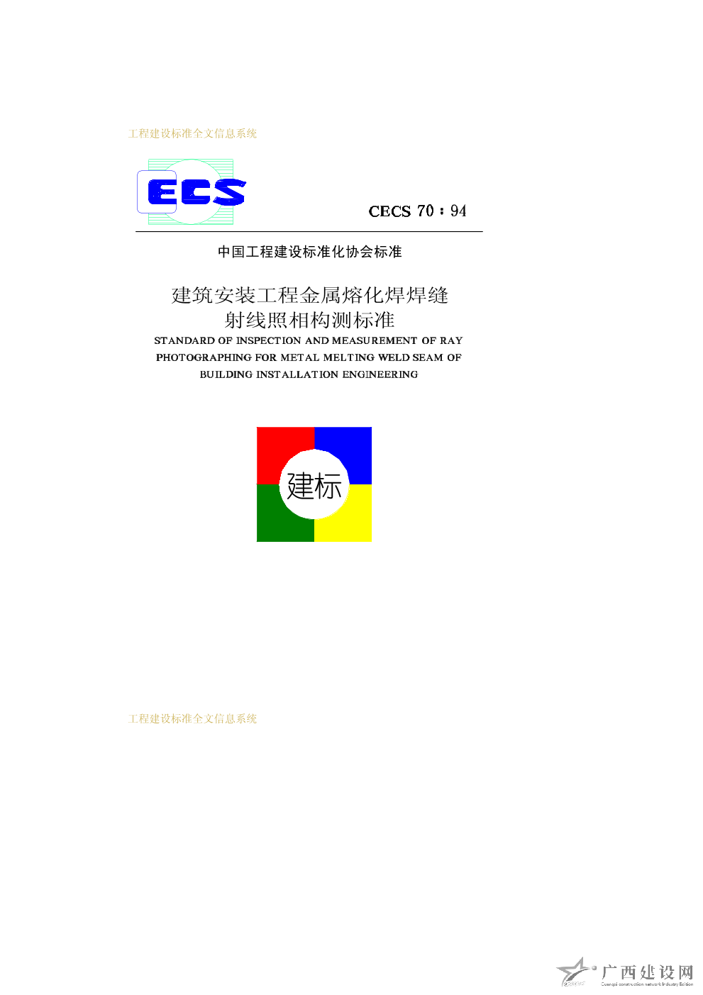 建筑安裝工程金屬熔化焊焊縫射線照相構測標準 CECS70∶94