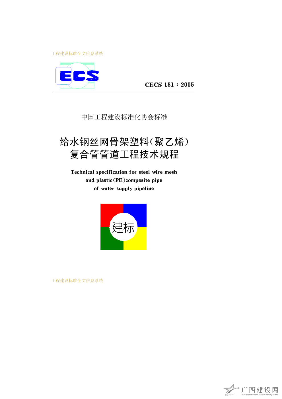 給水鋼絲網(wǎng)骨架塑料(聚乙烯)復(fù)合管管道工程技術(shù)規(guī)程 CECS181-2005