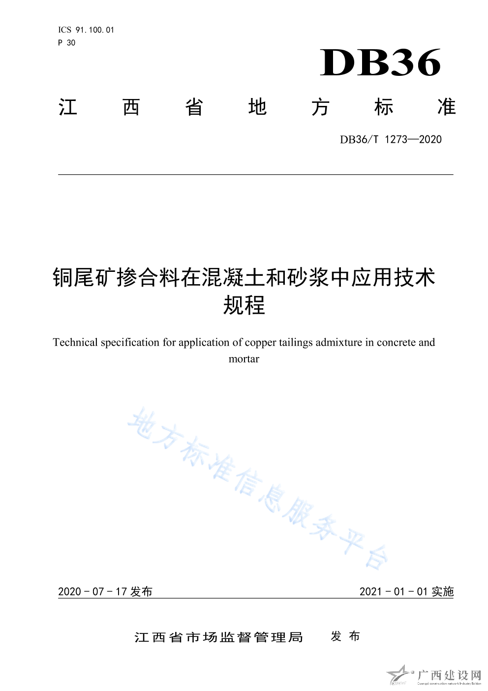 DB36 T1273-2020銅尾礦摻合料在混凝土和砂漿中應(yīng)用技術(shù)規(guī)程