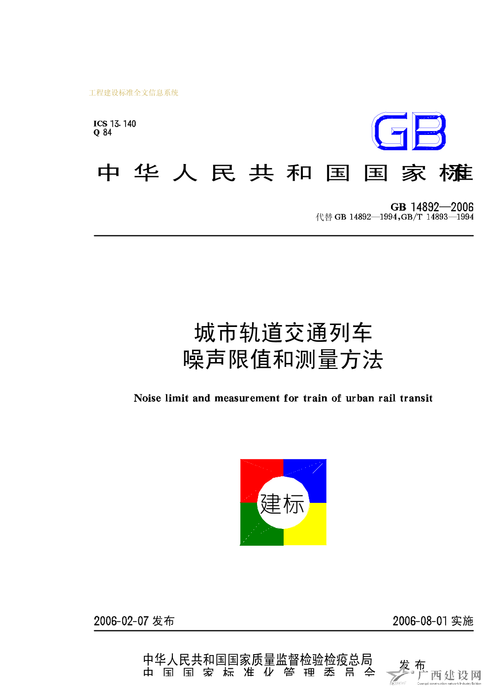 城市軌道交通列車噪聲限值和測量方法 GB14892-2006