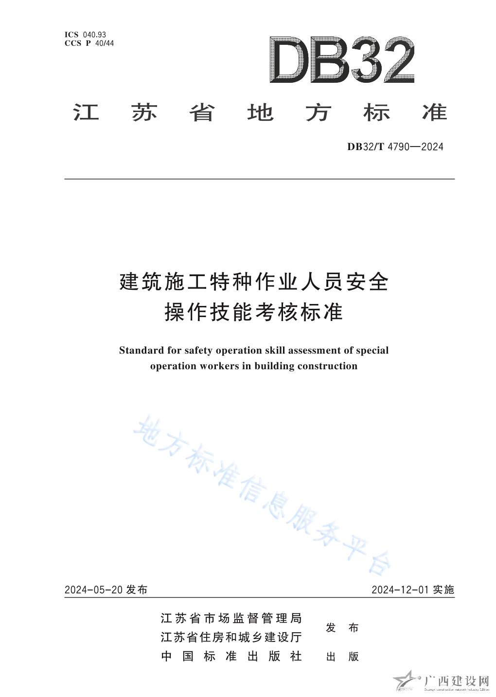 DB32T 4790-2024建筑施工特種作業人員安全操作技能考核標準