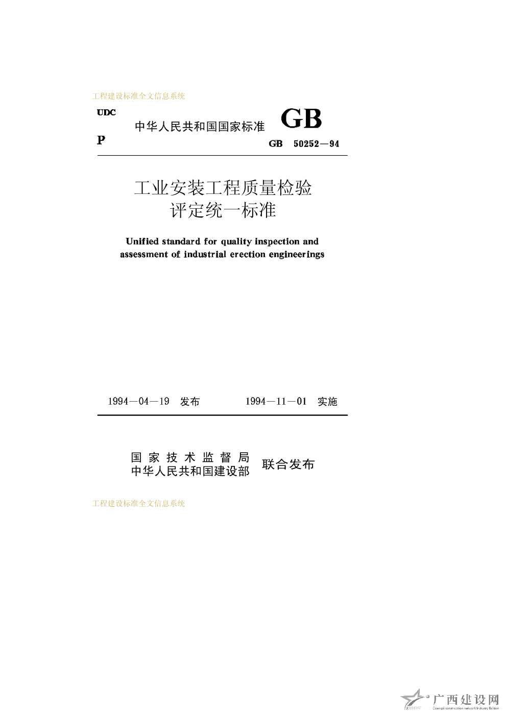 工業安裝工程質量檢驗評定統一標準 GB50252-94