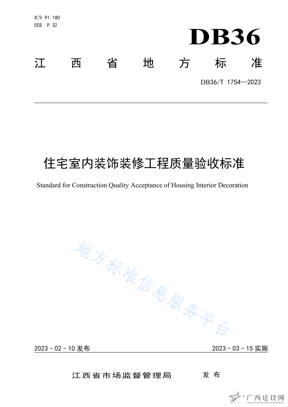 DB36T 1754-2023住宅室內裝飾裝修工程質量驗收標準