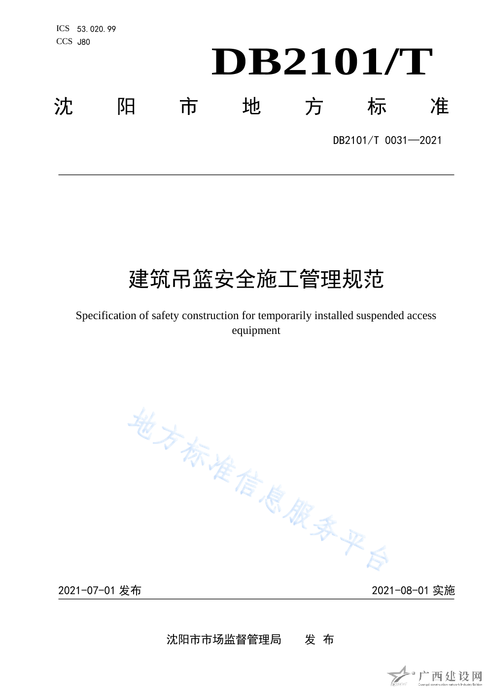 DB2101 T0031—2021建筑吊籃安全施工管理規范