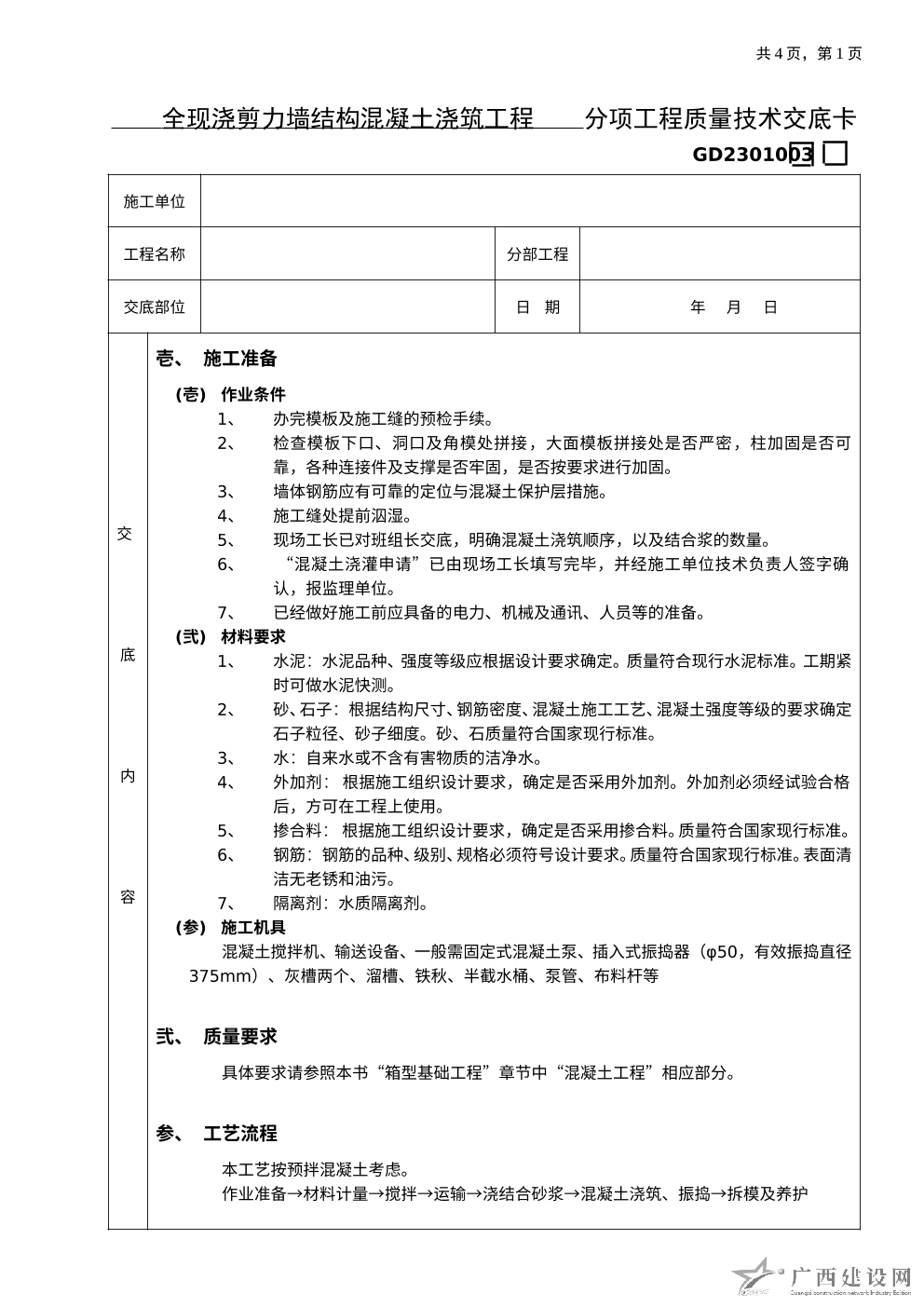 全現(xiàn)澆剪力墻結(jié)構(gòu)混凝土澆筑工程