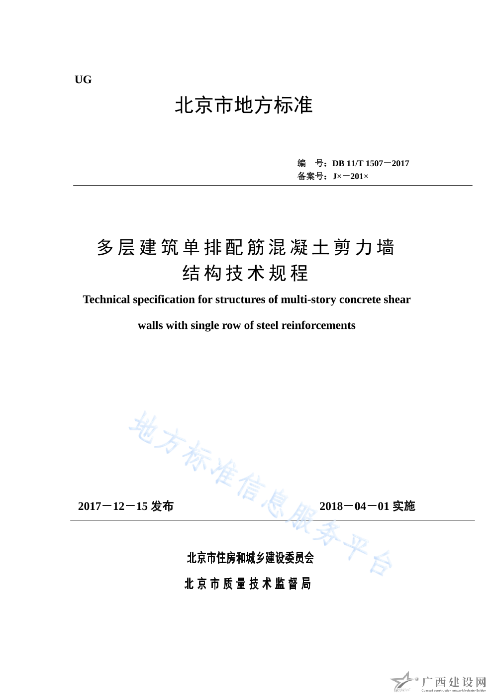 DB11 T_1507-2017多層建筑單排配筋混凝土剪力墻結(jié)構(gòu)技術(shù)規(guī)程