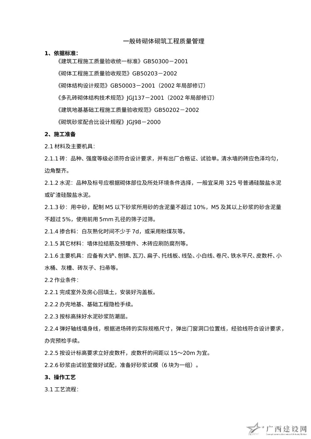 料石砌筑分項工程質量管理