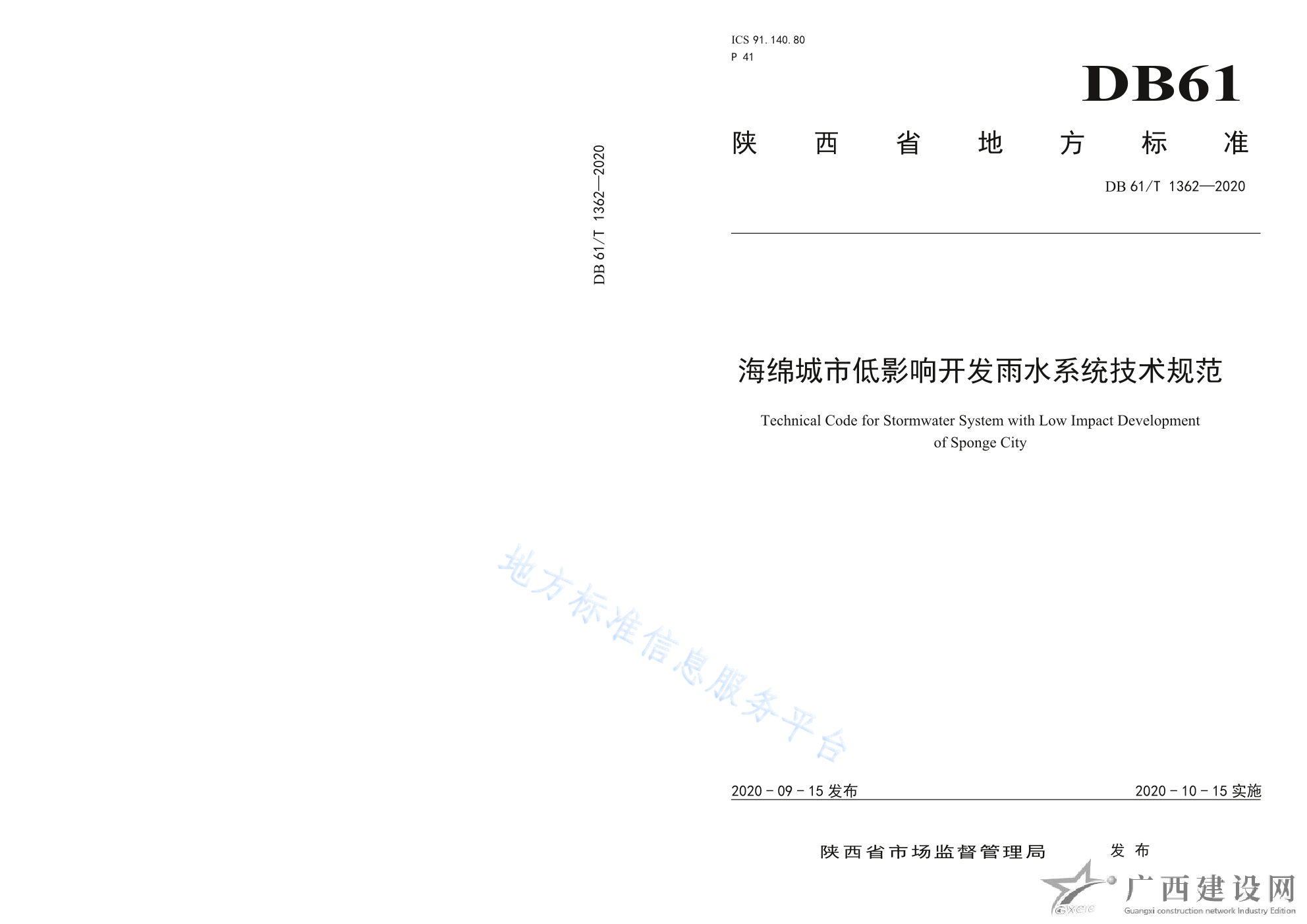 DB61 T1362-2020海綿城市低影響開發(fā)雨水系統(tǒng)技術(shù)規(guī)范