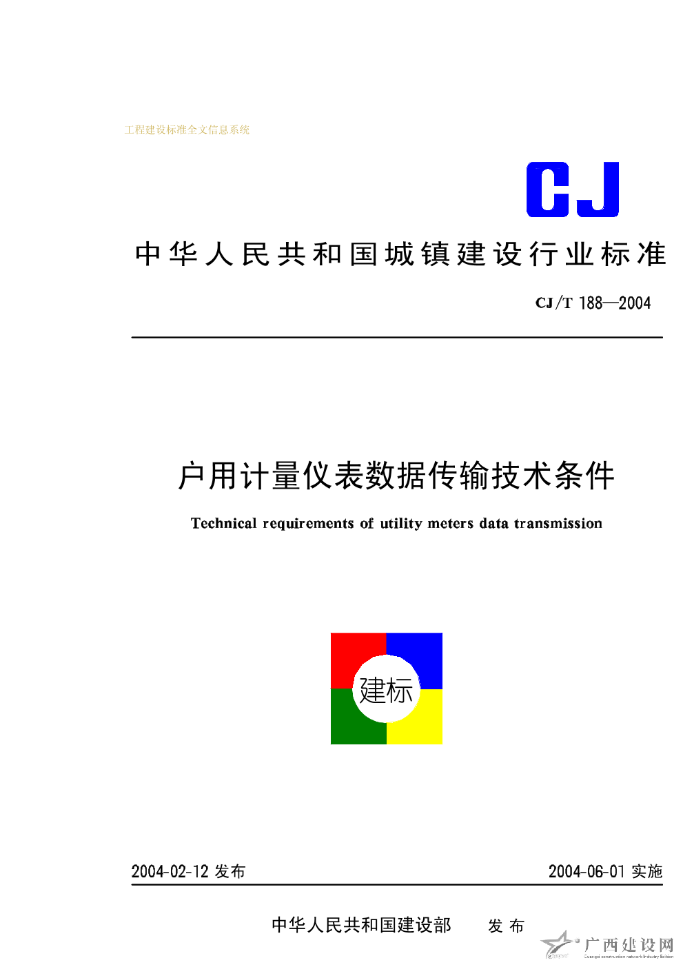 戶用計(jì)量?jī)x表數(shù)據(jù)傳輸技術(shù)條件 CJ/T188-2004