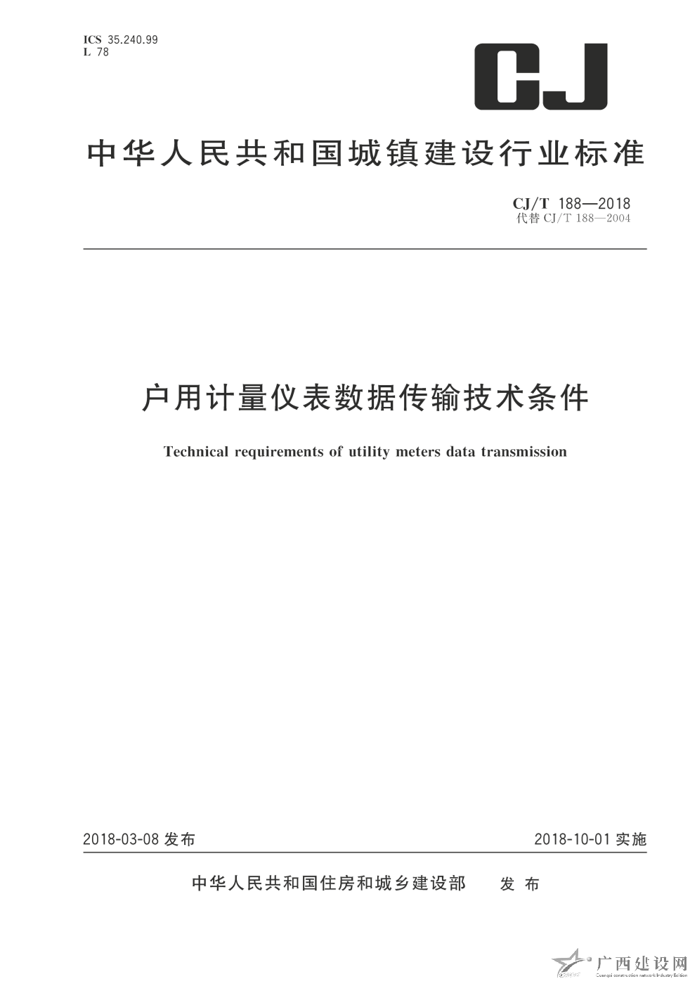 CJ-T188-2018:戶用計(jì)量?jī)x表數(shù)據(jù)傳輸技術(shù)條件