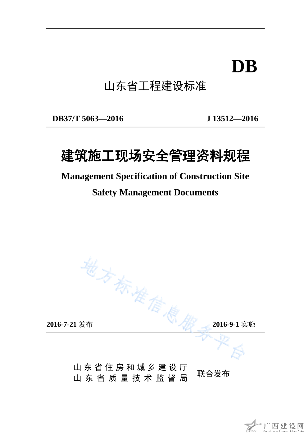 DB37 T5063-2016建筑施工現(xiàn)場(chǎng)安全管理資料規(guī)程