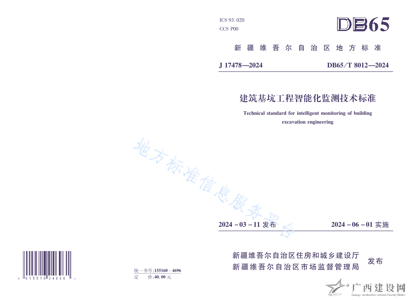 DB65T 8012-2024建筑基坑工程智能化監測技術標準